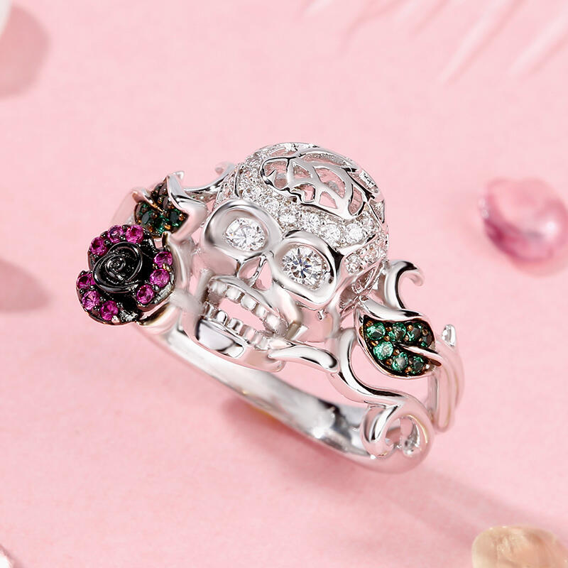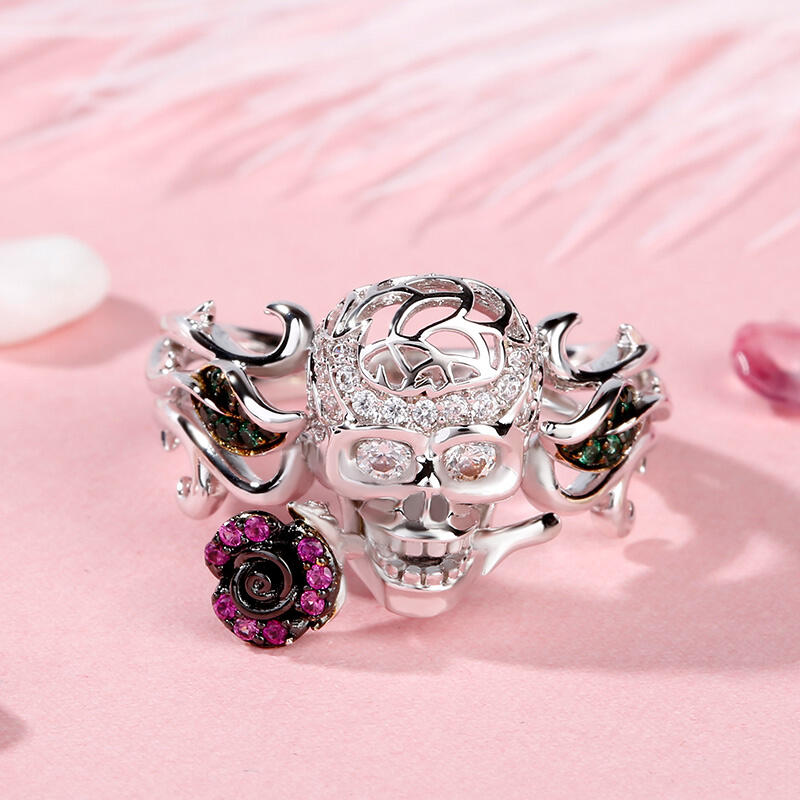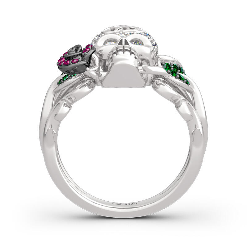 Jeulia "Forever Romance" Skull and Rose Sterling Silver Ring