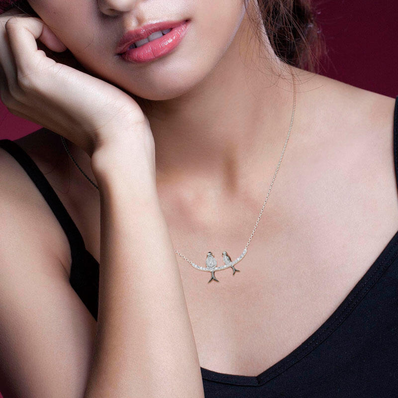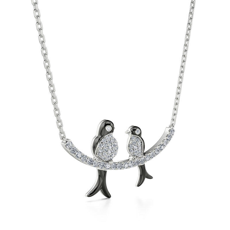 Hold your babies tight before they leave the nest. One day they're small and the next they're ready to spread their wings and fly. Inspired by the love shared between mama bird and her baby bird, this necklace is to be cherished. Here is a sweet and delicate necklace featuring a beautiful mom bird and her baby sitting on a clean and simple branch. Who can resist these sweet and magnificent animals? Give mom a symbolic jewelry gift that she'll forever treasure.