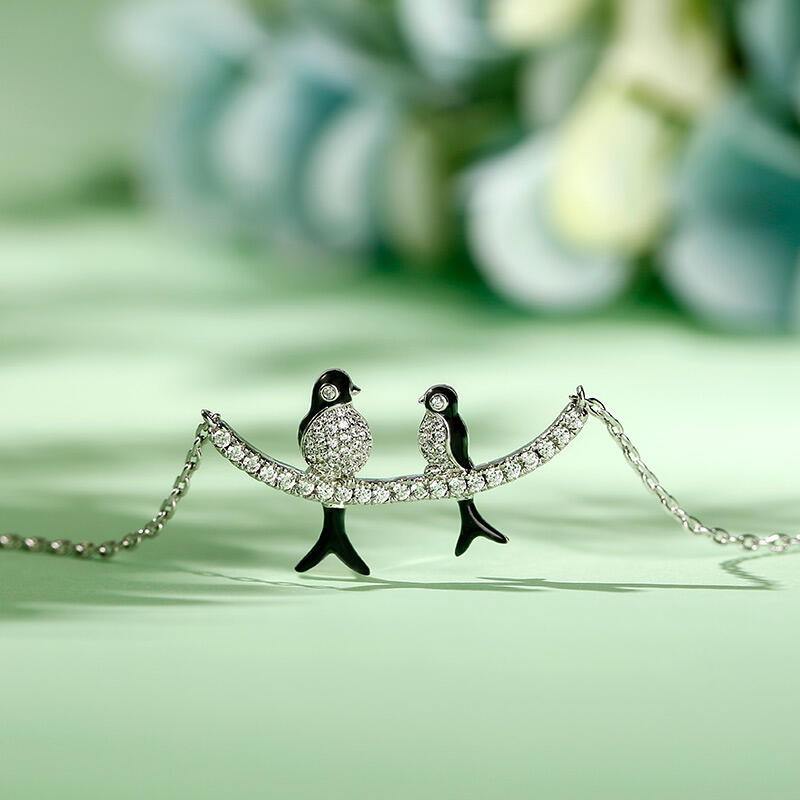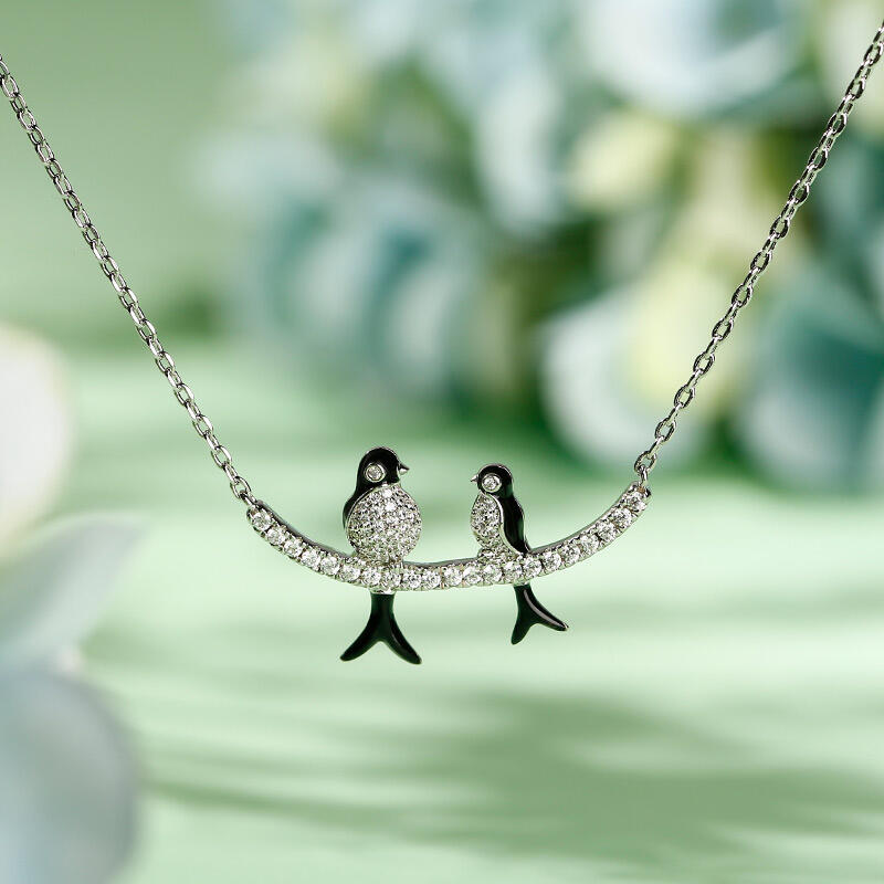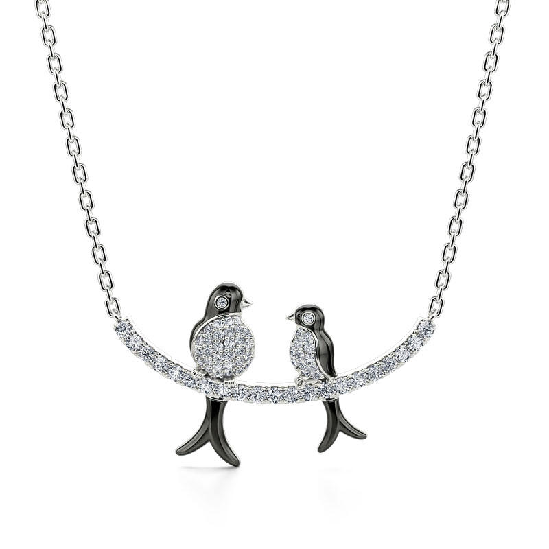 Jeulia Birds on a Branch Mother and Baby Nature Jewelry Sterling Silver Necklace