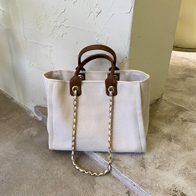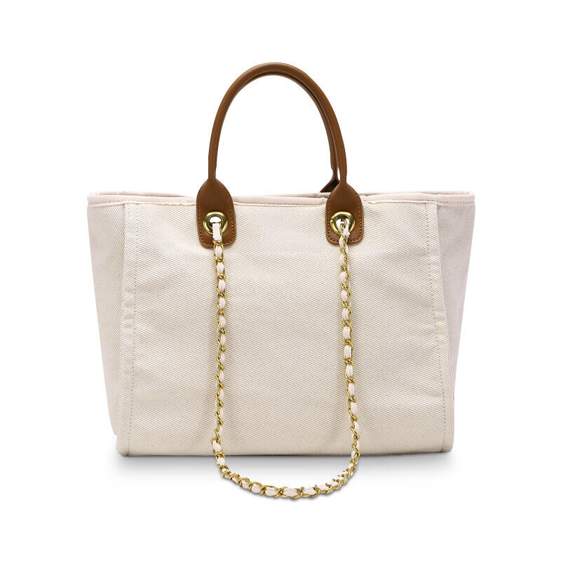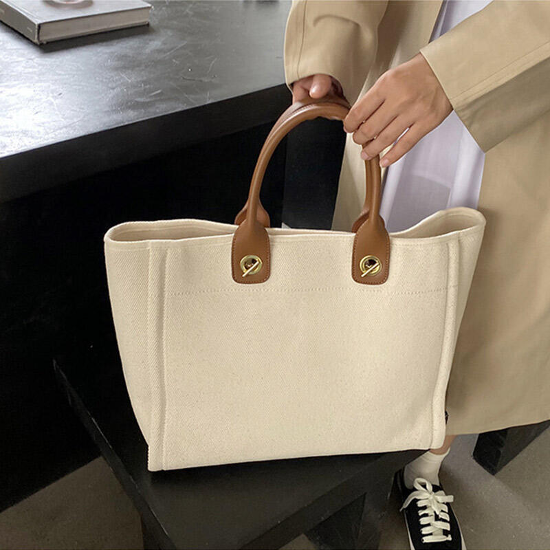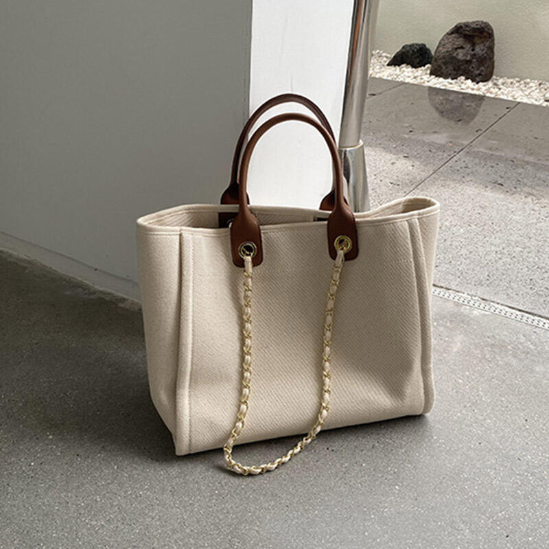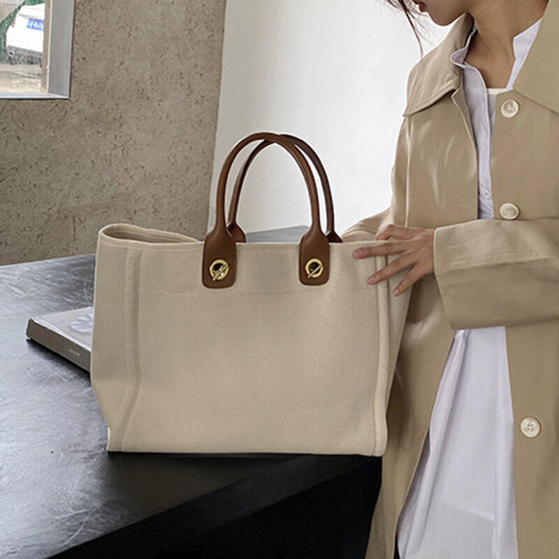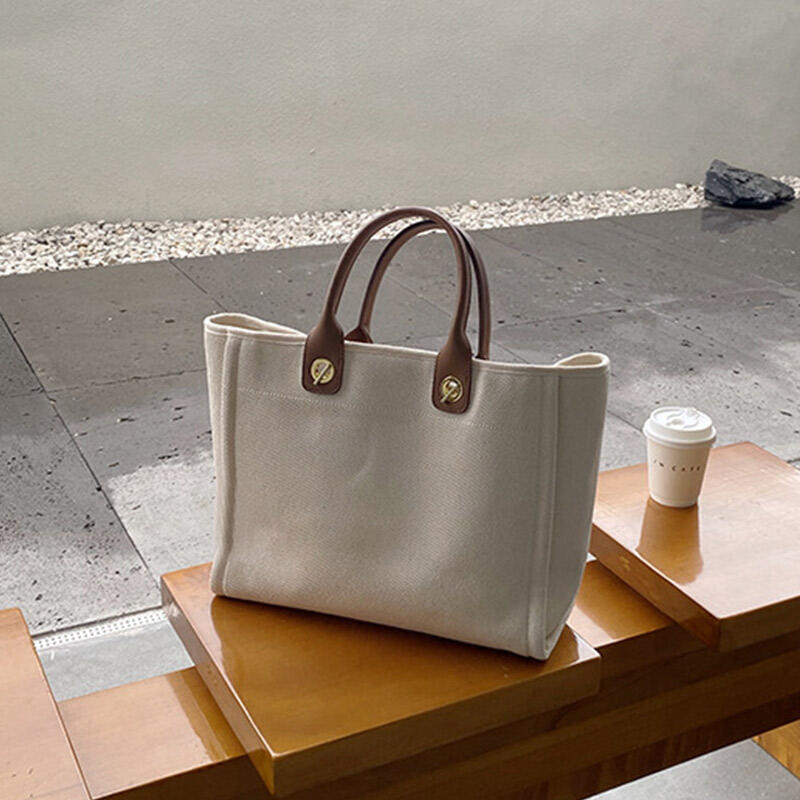 Jeulia Canvas Tote Bag with Dark Brown Handles Beach Bag