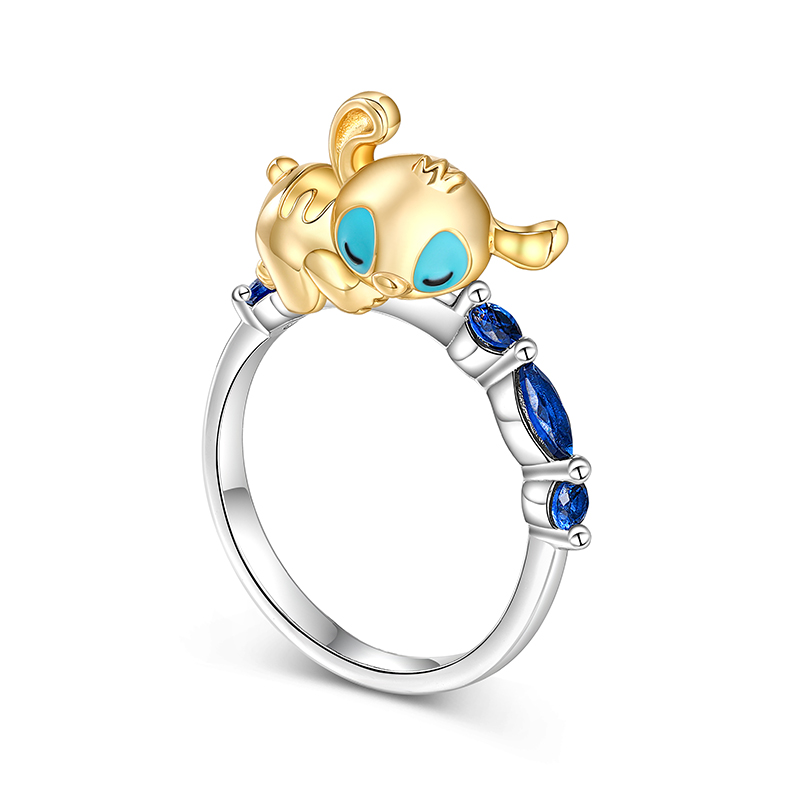 Jeulia Cartoon Monster Two Tone Ring Silver
