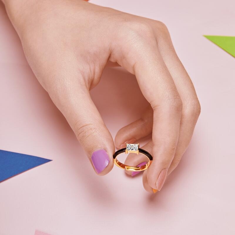 Jeulia Emerald Cut Enamel Sterling Silver Open Ring