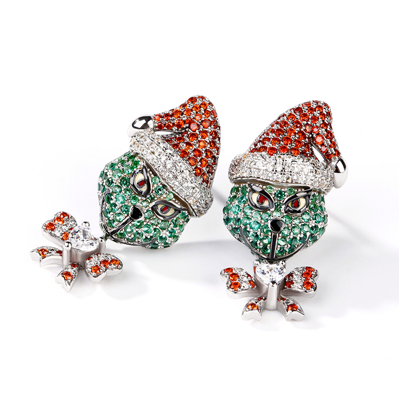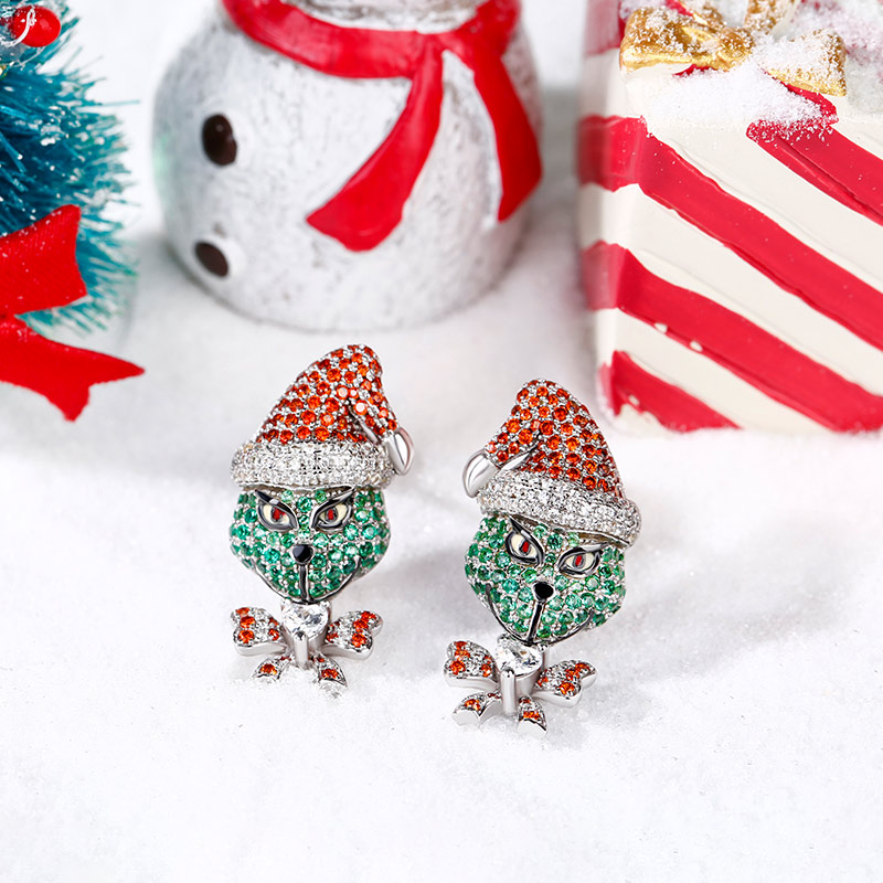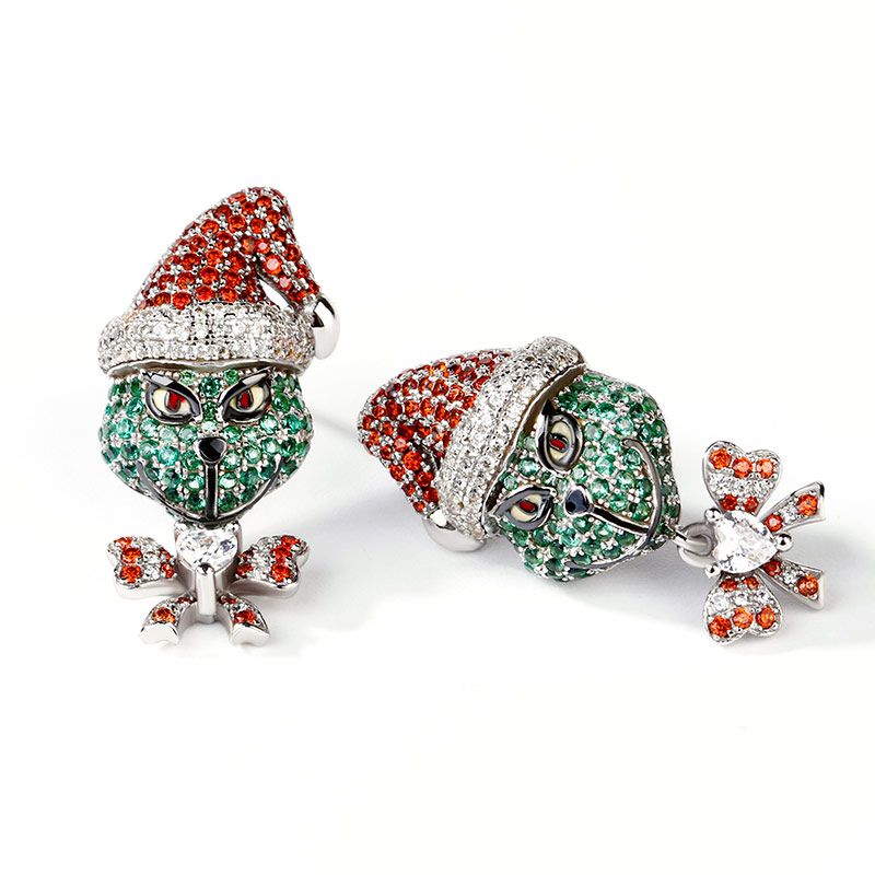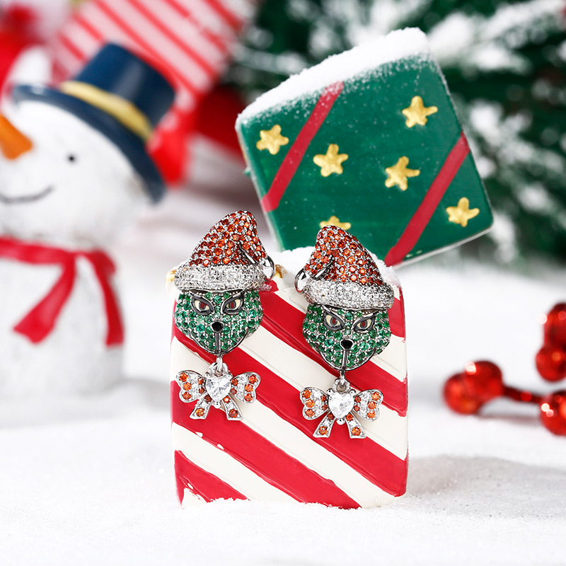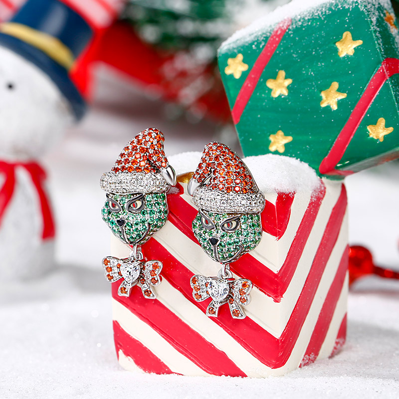 Do you still remember a green monster in that Christmas fantasy comedy film? Inspired by this film, each earring features a vivid monster with green face,attractive bowknot and red Christmas hat. Beautifully handcrafted in sterling silver, these earrings shimmer with sparkling stones, bright eyes and radiant smile. You will instantly fall in love with this cute design.