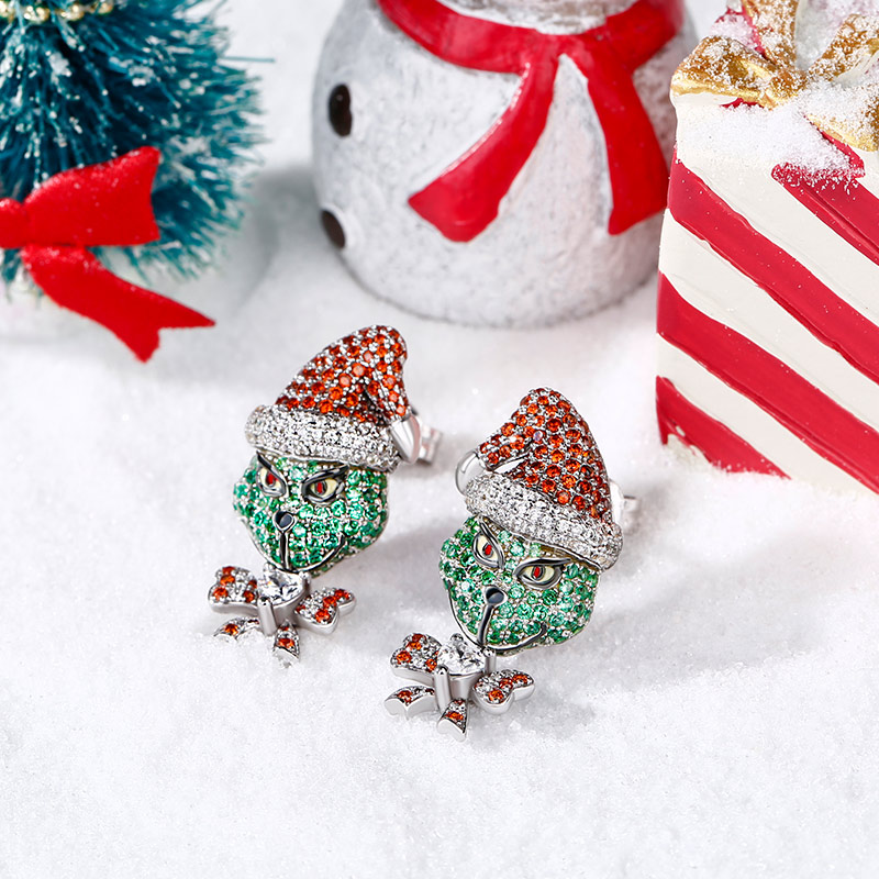 Jeulia "Holiday Cheermeister" Christmas Monster Inspired Sterling Silver Earrings
