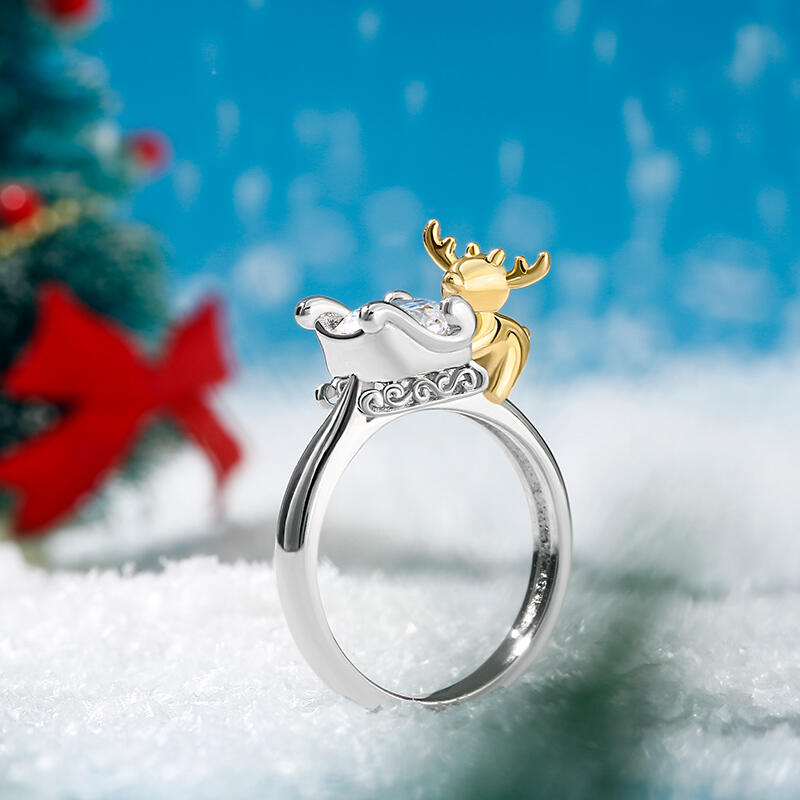 Jeulia Hug Me "Christmas Reindeer" Sleigh Round Cut Sterling Silver Ring