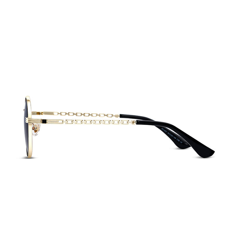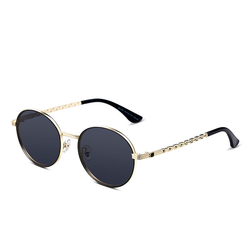 Emerge from the crowd with Jeulia "Infinity" sunglasses, which are absolutely retro. These round sunglasses have resurfaced as one of the most trendy styles today, with a curved brow bar and delicate link chain design temples. The unique detail and fine craftsmanship make this model a stunning edition. They are offered in black, graduated brown, and graduated grey to green lenses.