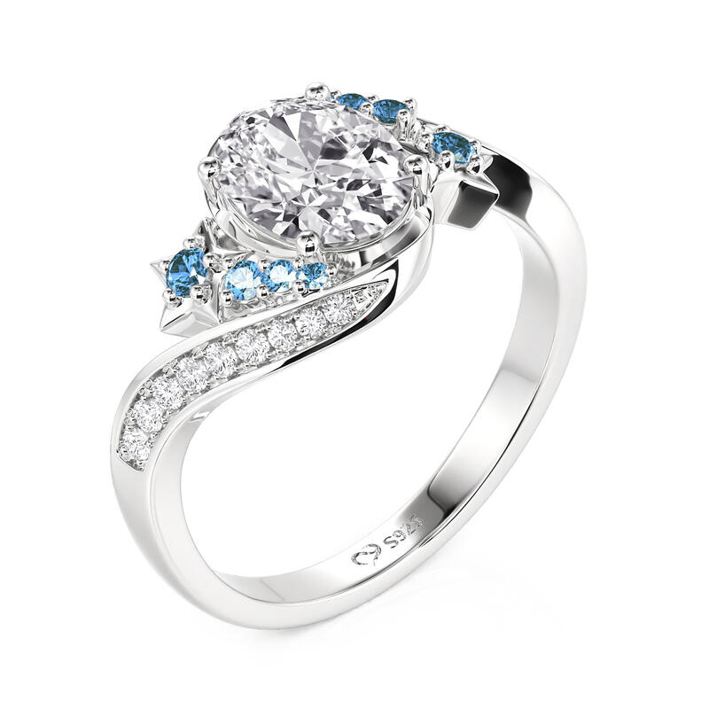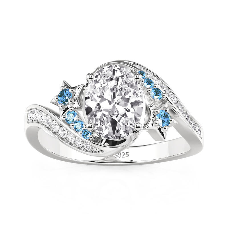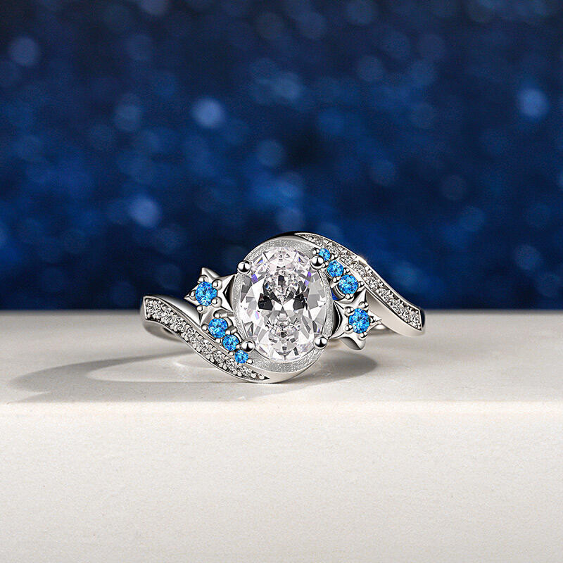 Jeulia Luna Astra Star Bypass Oval Ring Sterling Silver