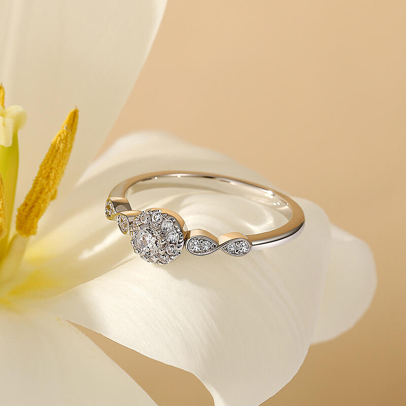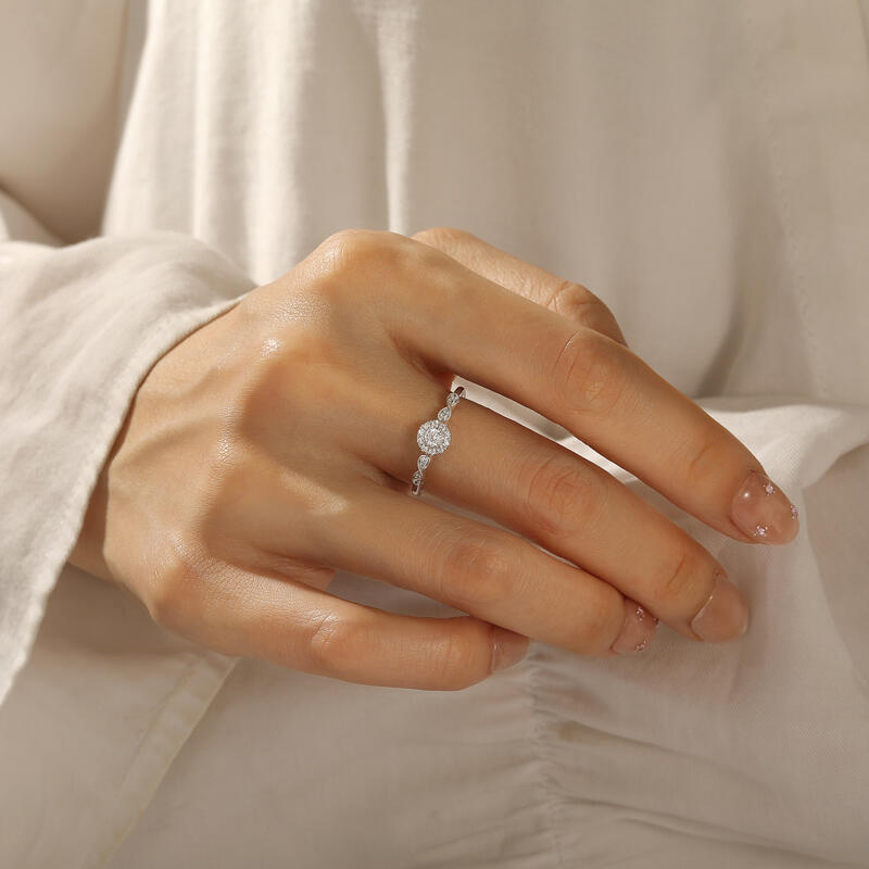 Jeulia Simple Custom Round Wedding Ring with Pave Setting