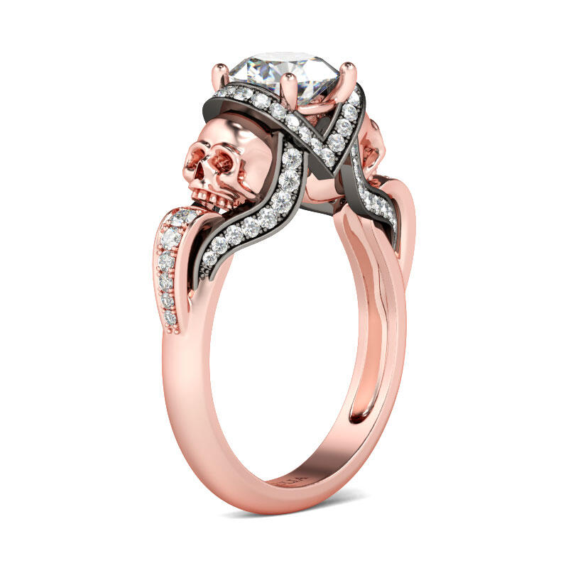 Jeulia Two Tone Round Cut Sterling Silver Skull Ring